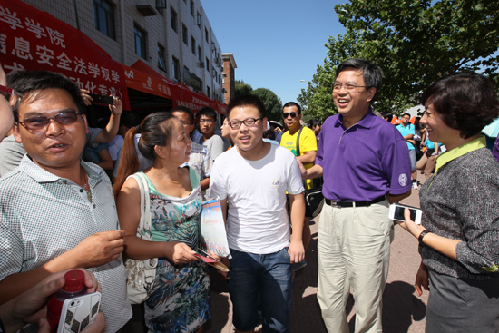 南开新闻网讯(记者 辛文忠 摄影 任永华 张芮)8月18日,碧空如洗,秋风送爽。南开大学迎来了3000多名本科新生。 当天上午,校党委书记薛进文、校长龚克,校党委副书记、副校长杨克欣,校党委常委张亚,学校办公室、党委学工部、校团委等部门负责人来到迎新现场,欢迎初入南开的新生及家长,并慰问忙碌在迎新现场的师生。 在新生“绿色通道”前,来自甘肃定西地震灾区的新生闫菊凯正在老师的指导下办理着报到手续。薛进文详细询问了闫菊凯的家庭情况。他对学生家长说,“南开是个大家庭,是读书的好地方,请家长放心,学校会尽全力照顾好他们。” 来自陕西的赵嘉兴今年刚满14岁,是2013级新生中年龄最小的。在计算机与控制工程学院报到地点前,龚克与他亲切交谈,鼓励他继续努力学习,在大学期间培养自己的独立能力。 在新生宿舍,校领导与新生和家长拉起家常,希望同学们尽快适应集体生活,互相帮助,并嘱咐同学们一定要保持好宿舍卫生…… 薛进文、龚克专程来到周恩来政府管理学院新生王娇的宿舍,看望这位双腿因患骨骺发育不良,行动困难的大连女孩。校领导表示,将在生活上尽最大努力对王娇进行照顾,希望王娇以南开求学作为生活的新起点,面对挑战、克服困难,通过自己的努力,体会大学的丰富多彩。王娇的母亲说:“感谢学校对孩子的细心照顾,孩子在南开学习生活,我们很安心”。 每到一个新生报到处,薛进文、龚克都向现场工作师生详细询问报到情况,代表学校感谢大家付出的辛勤劳动,并嘱咐大家对有特殊情况的同学要特别关注,给予他们切实帮助。校领导还实地查看了新生收费处、户籍办理处等。 迎新现场,学院的师生为新生准备独具特色的报到礼物:容止格言镜、时光信箱、教师寄语、入学第一照……,用这种特别方式进行“新生入学教育第一课”。 今年南开大学在全国共录取名3283名本科生。学校继续为经济困难新生入学开通“绿色通道”,针对家庭困难学生实施的“南开助你启航”项目,该项目全套套餐总价值达2600余元,包括教材费、床上用品、餐费、澡票、手机话费、自行车、心理咨询等。 此外,可新生还可关注“南开大学”官方微信和官方微博,寻找更多入学相关的服务指南,随时地更快捷地获取学则、选课、军训等校园信息,尽早地适应大学生活。 |