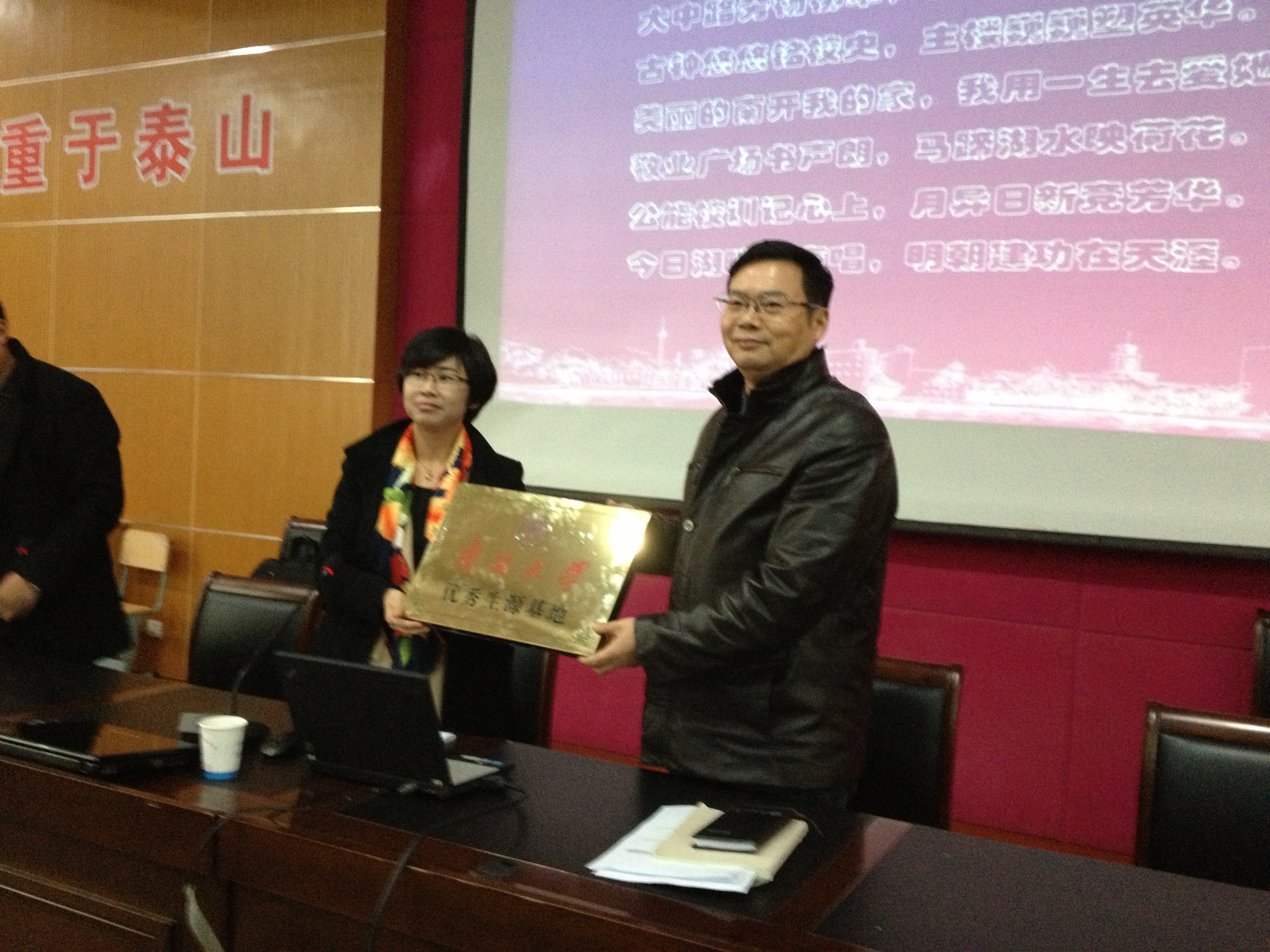 招办主任邵庆辉向桐乡高级中学校长陆炳荣授牌