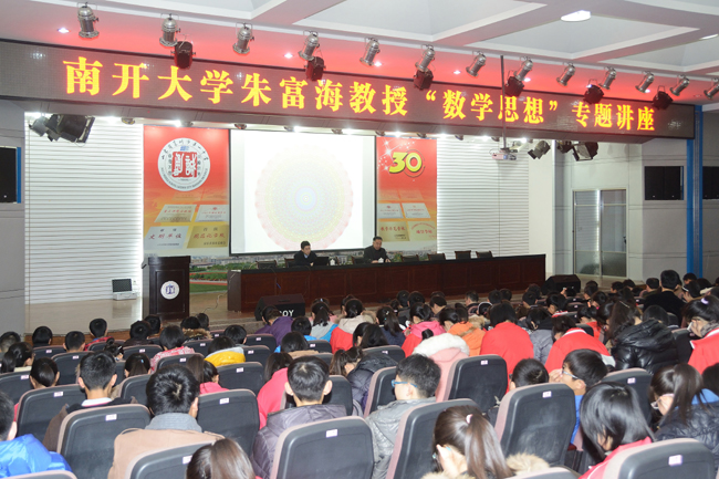 1月5日,南开大学朱富海教授应邀赴山东省莱州一中举办了题为“数学思想”的专题讲座,该校分管教学的相关领导及高一、高二年级部分学生代表600余人聆听了讲座。