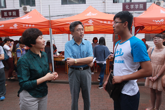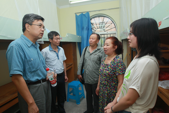 龚克向工作人员详细询问报到情况,嘱咐大家对有特殊情况的同学要特别关注,给予他们切实帮助。