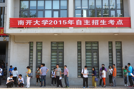 “文科考生考语文,理科考生考数学,同时,我们不单纯是考察语文和数学知识。”招生办公室负责人表示,“我们希望通过自主招生录取的文科生也有具有较强的逻辑思维、科学素养,理科学生也能够体现出较好的文化底蕴和人文情怀。”今年自主招生面试,着重考察学生的逻辑思维能力,语言表达能力,创新意识,思维敏锐性,沟通能力等多方面素质,负责考察学生的专家组成员均为正教授。据悉,南开大学2015年自主招生继续坚持“综合评价,多元录取”的选才理念,选拔具有学科特长和创新潜质的优秀学生,自主招生计划名额不会超过全年全国招生计划总数的5%。