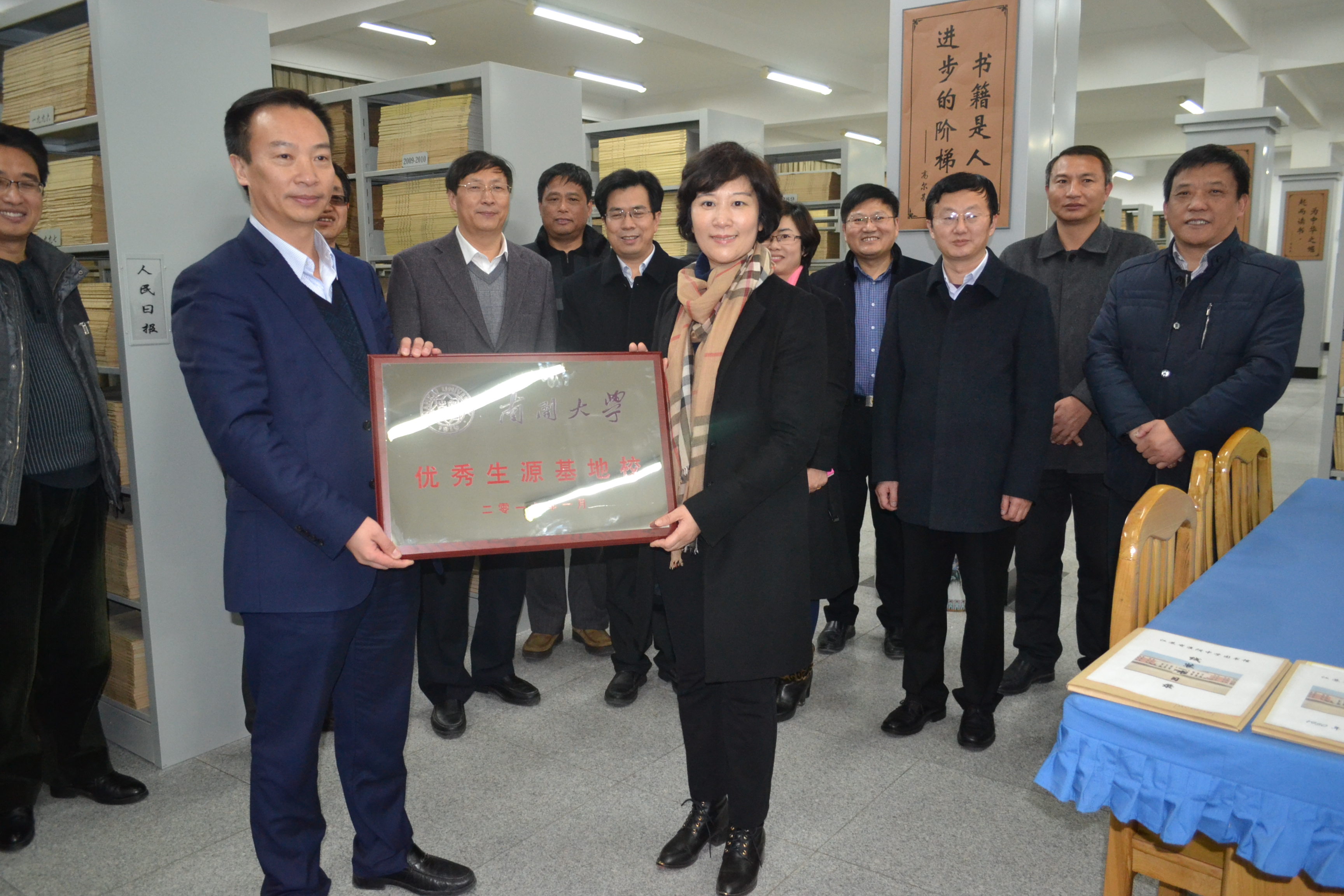 在中学建立优秀生源基地,是近年来我校招生工作的新举措,并已取得显著成效。淮阴中学坐落于周恩来总理故乡江苏淮安,是国家首批示范级高中,生源质量高,在我校2015年的高招中,共有5位淮阴中学学子考入南开大学。