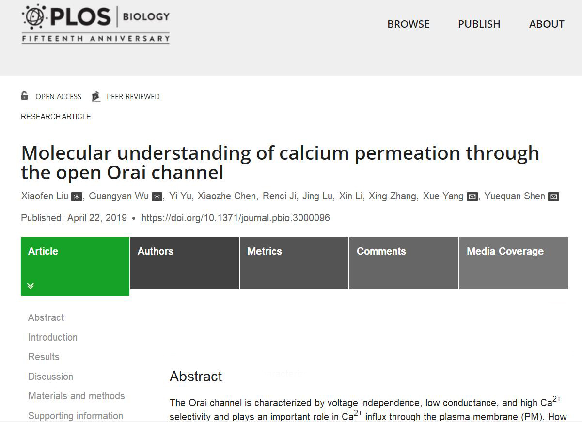 经过多年持续攻关,南开大学生命科学学院、药物化学生物学国家重点实验室沈月全教授团队,利用X-射线晶体学和冷冻电镜的方法解析了激活态Orai通道三维结构,并结合生物化学、细胞生物学和电生理方法成功阐释了Orai通道的激活机制及其钙离子通透机制,为相关疾病致病机理研究、药物研发奠定了基础。日前,该工作以研究长文形式发表于国际知名学术刊物PLOS Biology上。