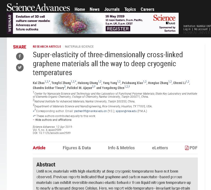 据悉,该项研究由南开大学陈永胜教授团队和美国莱斯大学Pulickel Ajayan教授团队合作完成,获得了国家科技部、国家自然科学基金等支持。